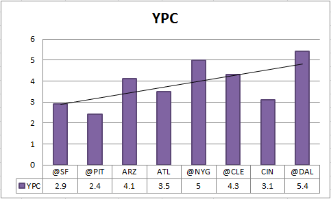 | Note the upward trend for the running game through eight games |