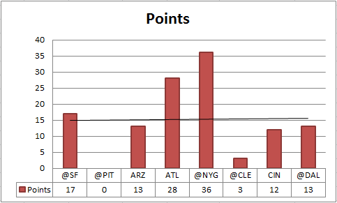 One thing that has come up a lot has been a belief that the additional yards are meaningless because they are not leading to points. Take a look at the scoring trend so far: