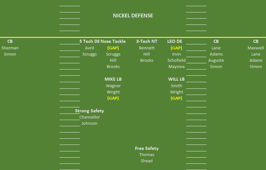 It is not clear who will step in for McDonald as the nickel defensive tackle partner for Michael Bennett. It is probably Greg Scruggs for now, but it needs to be someone who is still very capable of holding up against the run, and Scruggs is less proven at that, especially on the inside. There is also a question of who rushes opposite Avril when the team goes to nickel. Irvin is the best bet, but that is a key question for a team that featured one of the best pass rushes in football last year.