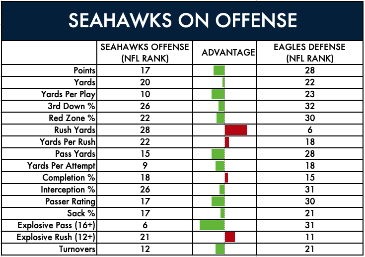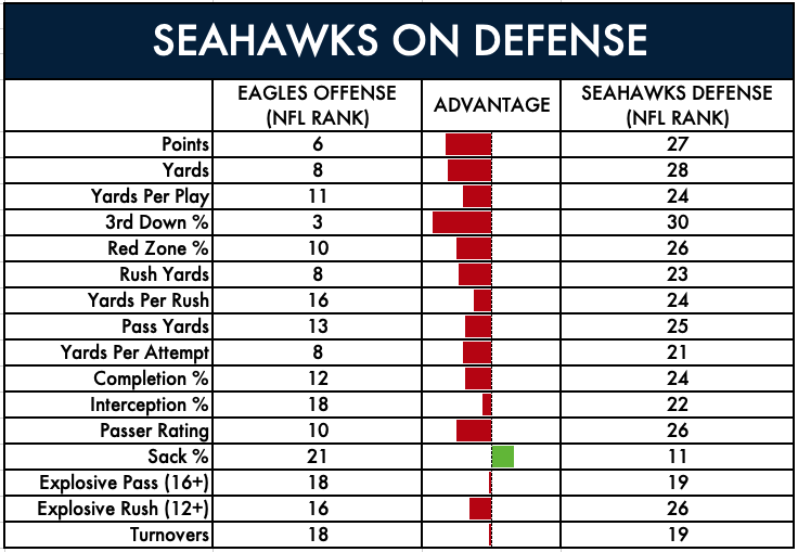 For the first time in a month, the Seahawks have a legitimate shot to win a football game. That might be surprising to read, knowing the defending NFC champs are coming to town and the Seahawks are nursing a four-game losing streak. What you may not know is the Eagles have a defense that actually ranks lower than the highway known as the Seahawks defense.