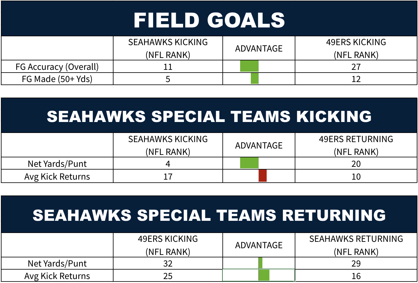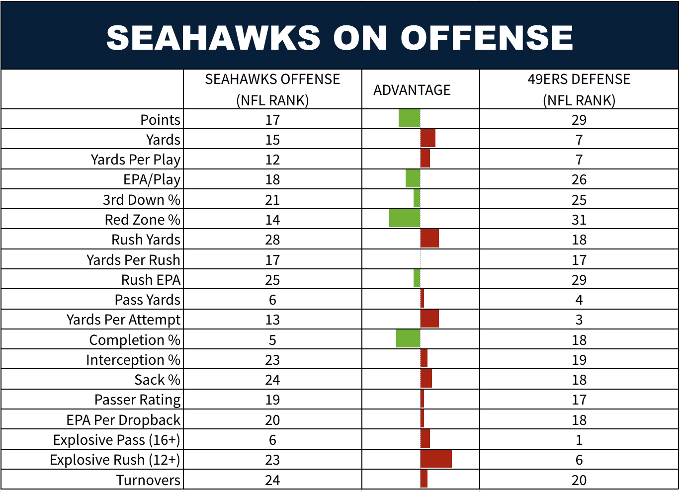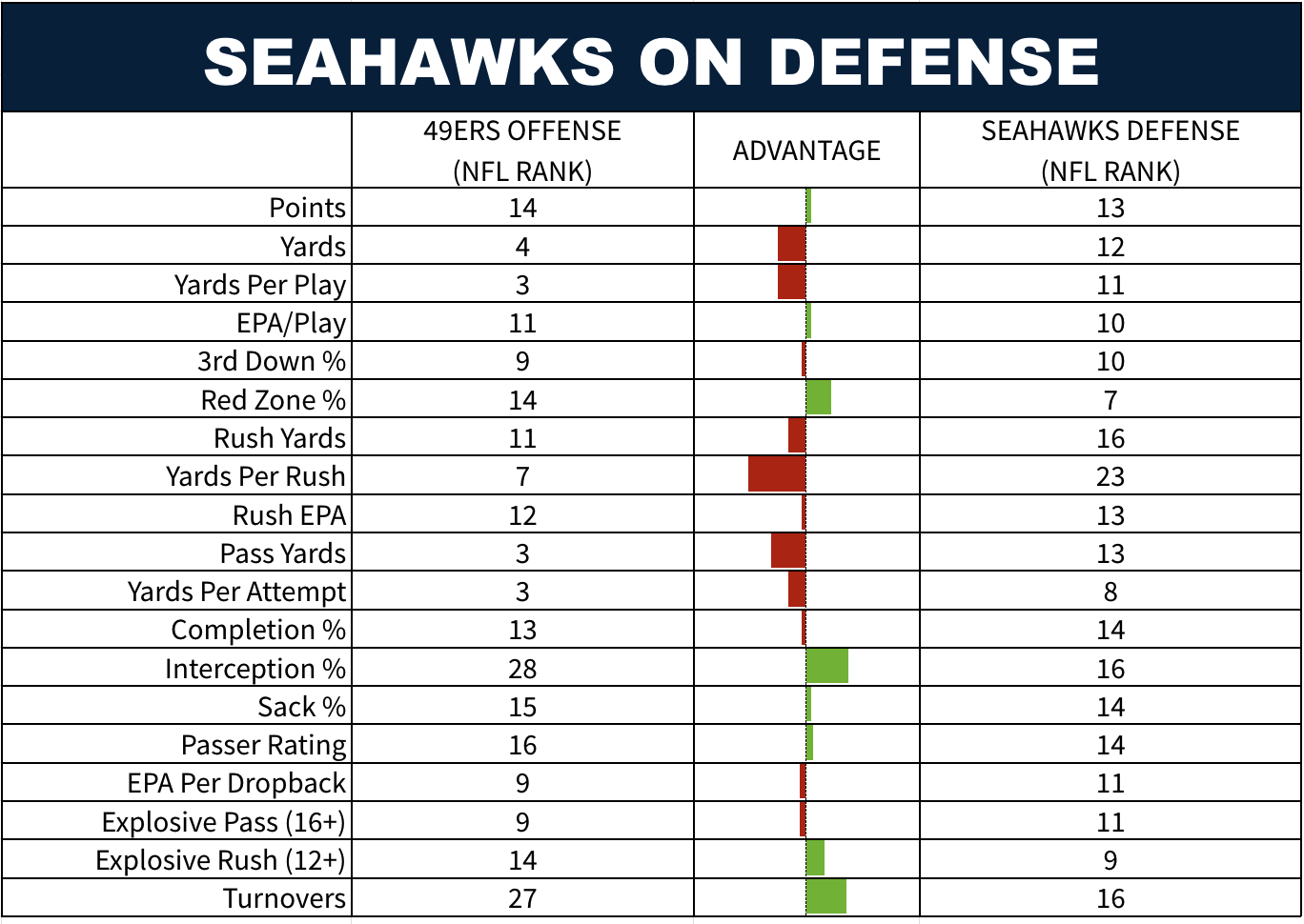 One aspect that might surprise Seahawks fans is their special teams ranked 10th by this measure, while the 49ers were 31st. More on that in a bit.