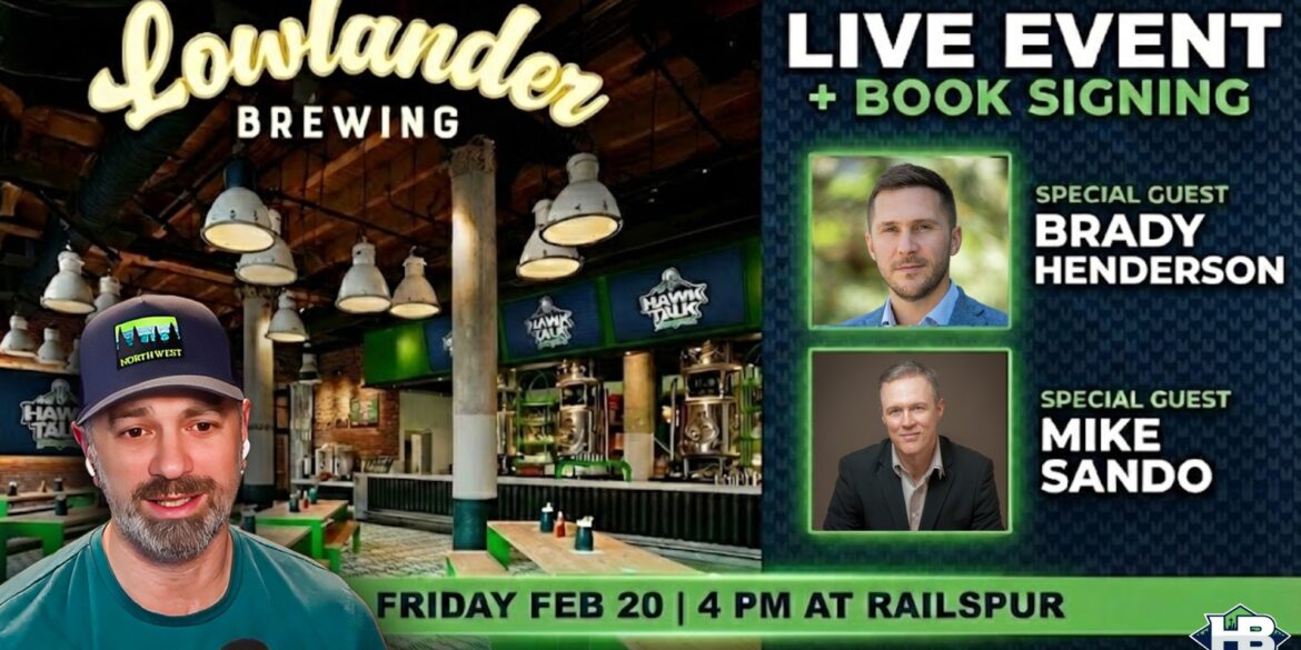 Join us for a LIVE SHOW at Lowlander Brewing at Railspur right near Lumen Field! We will be joined by special guests Mike Sando of The Athletic, and Brady Henderson of ESPN. WHERE: Lowlander Brewing (old FX McCrory’s) WHEN: 4PM-5PM show, 5PM-6PM book signing & pictures TICKETS: LIMITED TICKETS AVAILABLE...