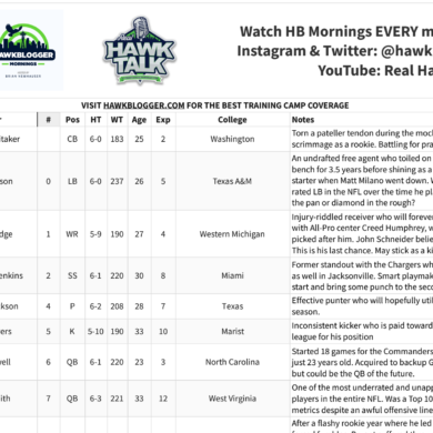 This episode is brought to you by Manifest Fit (https://www.manifestfit.com/) Anyone can become a HB Patron at http://patreon.com/hawkblogger Audio Podcast: Hawk Blogger · Real Hawk Talk Episode 323: Training Camp Preview...